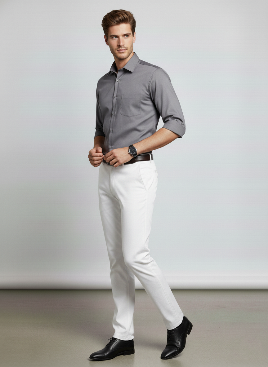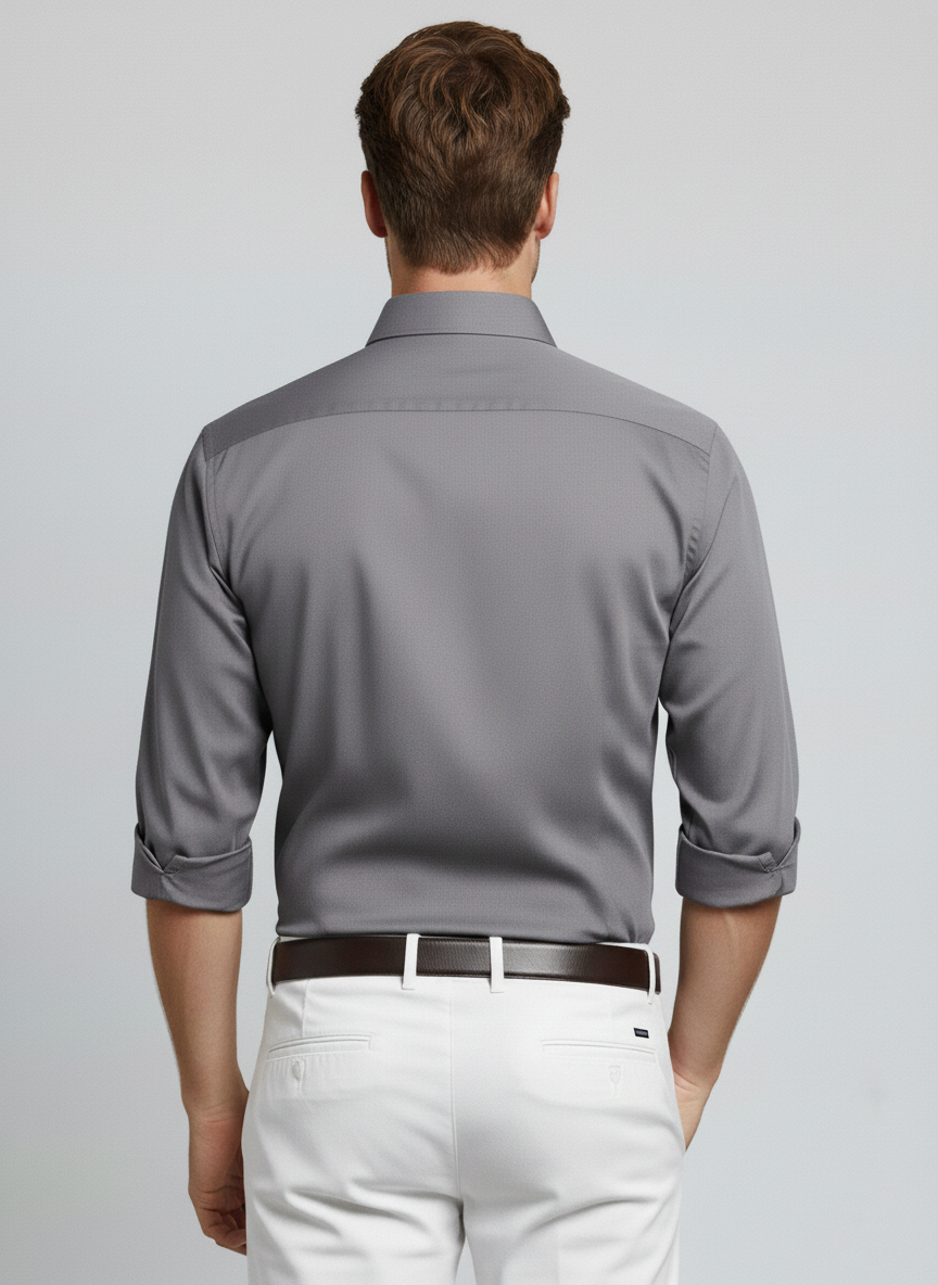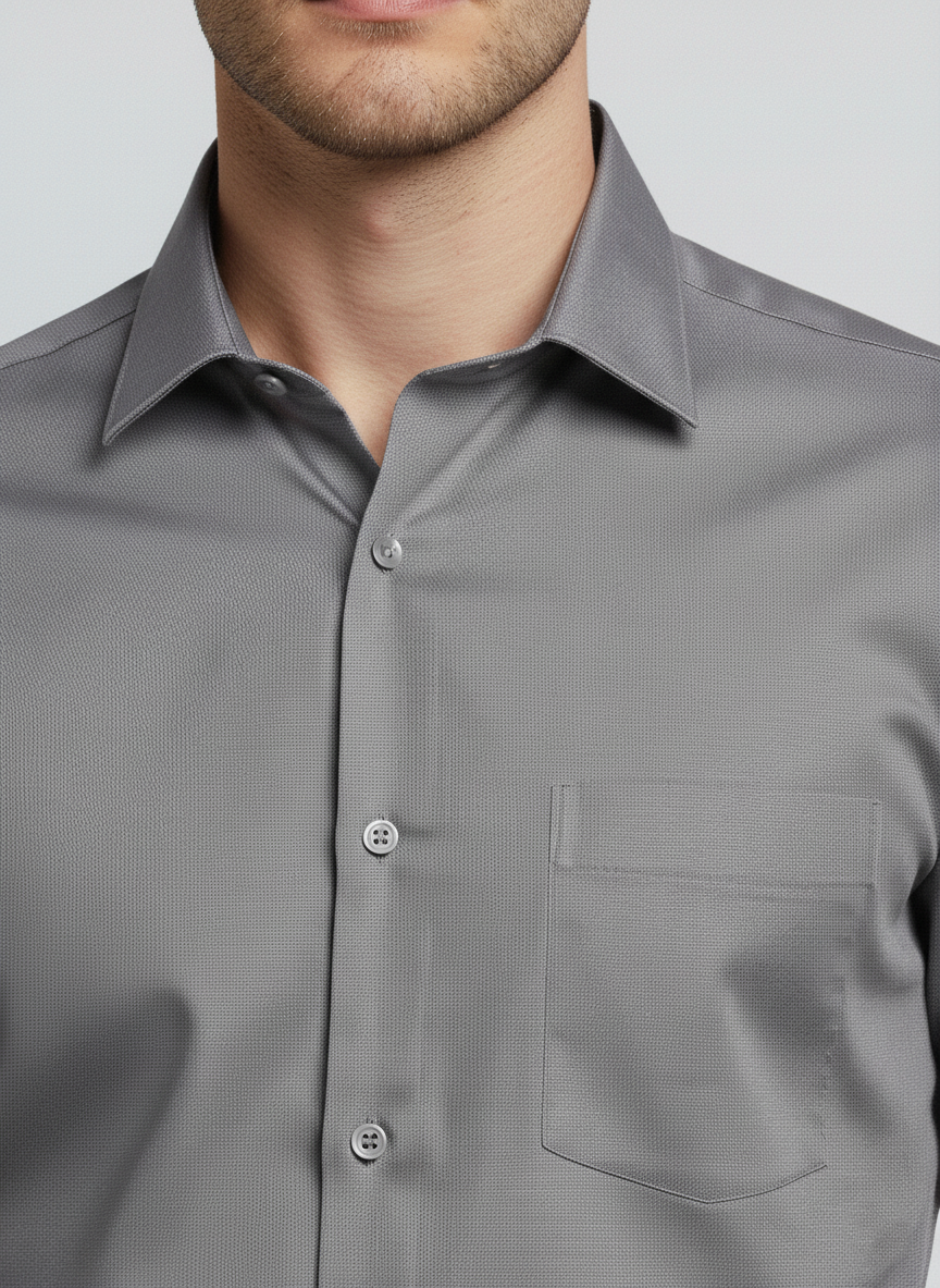Men Light Grey Slim Fit Full Sleeves Cotton Formal Shirt